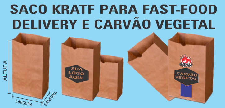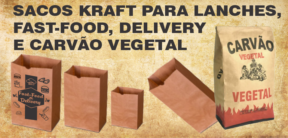 Produzimos e distribuimos sacos kraft para fast-food, delivery e carvão vegetal, Lisos ou personalizados em até 3 cores.